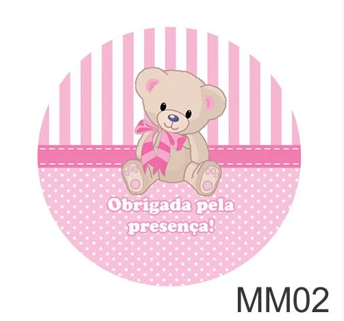 Adesivo Chá de Bebê Urso Listras Rosa – 20 unidades