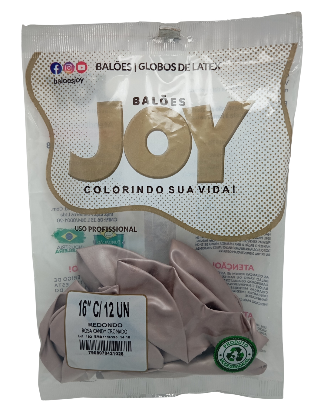 Balão de Festa Profissional Látex Candy Cromado Rosa 16" - Joy
