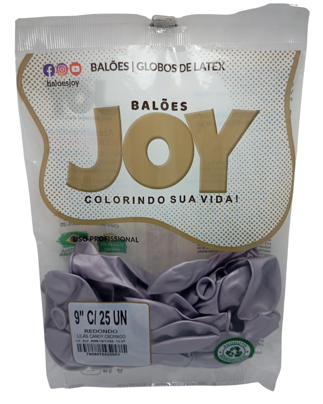 Balão de Festa Profissional Látex Candy Cromado Lilás 9” - Joy