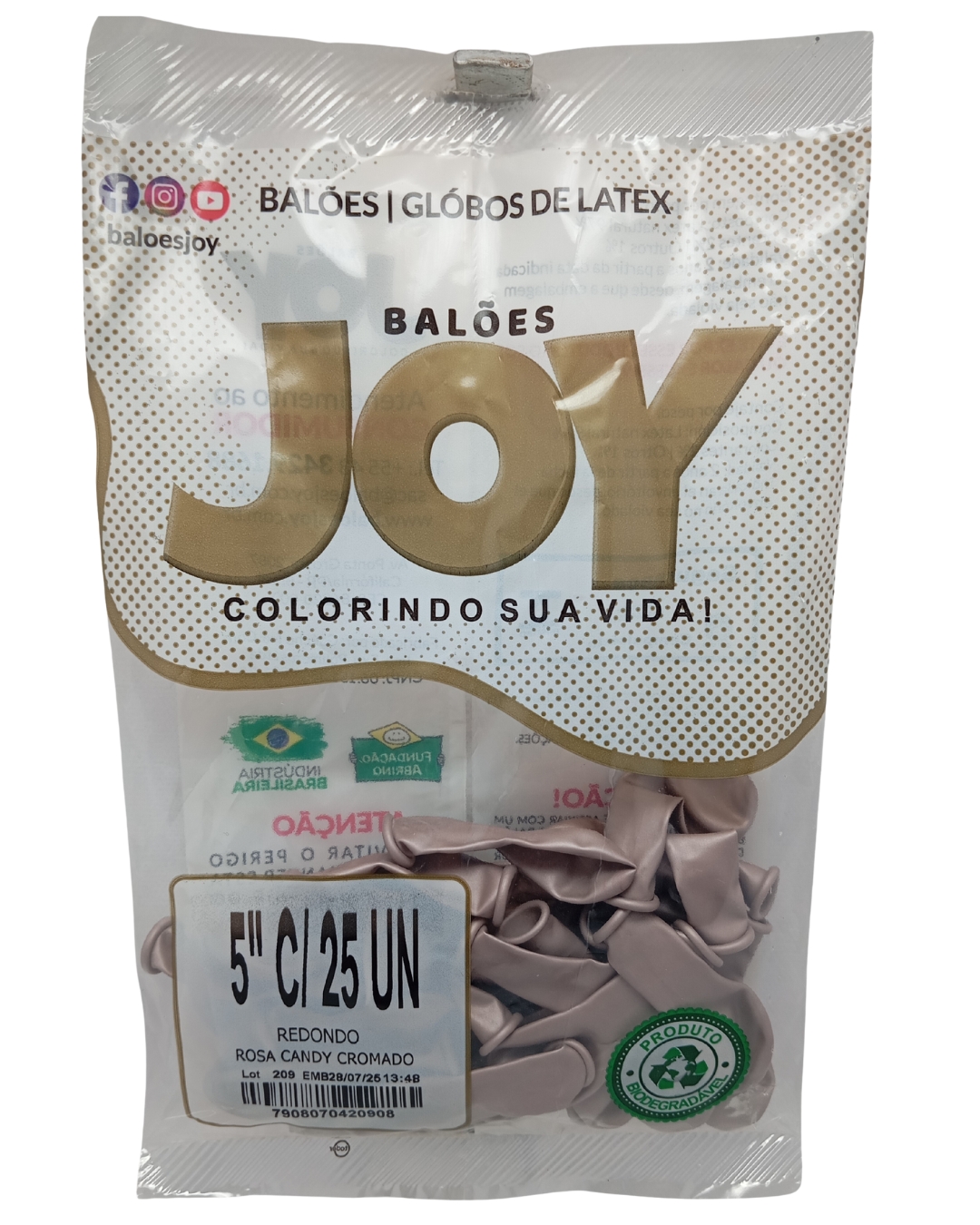 Balão de Festa Profissional Látex Candy Cromado Rosa 5" - Joy