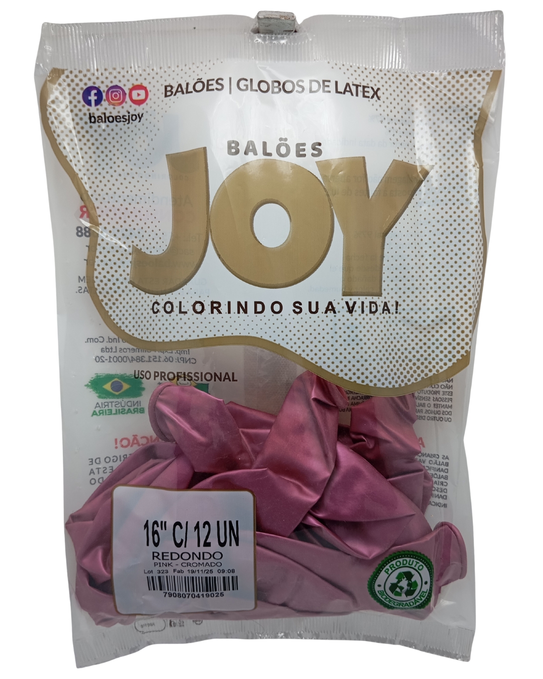 Balão de Festa Profissional Látex Cromado Pink 16" - Joy