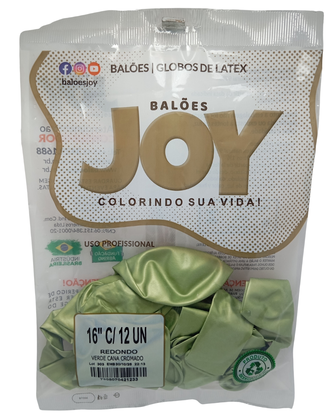 Balão de Festa Profissional Látex Cromado Verde Cana 16" - Joy