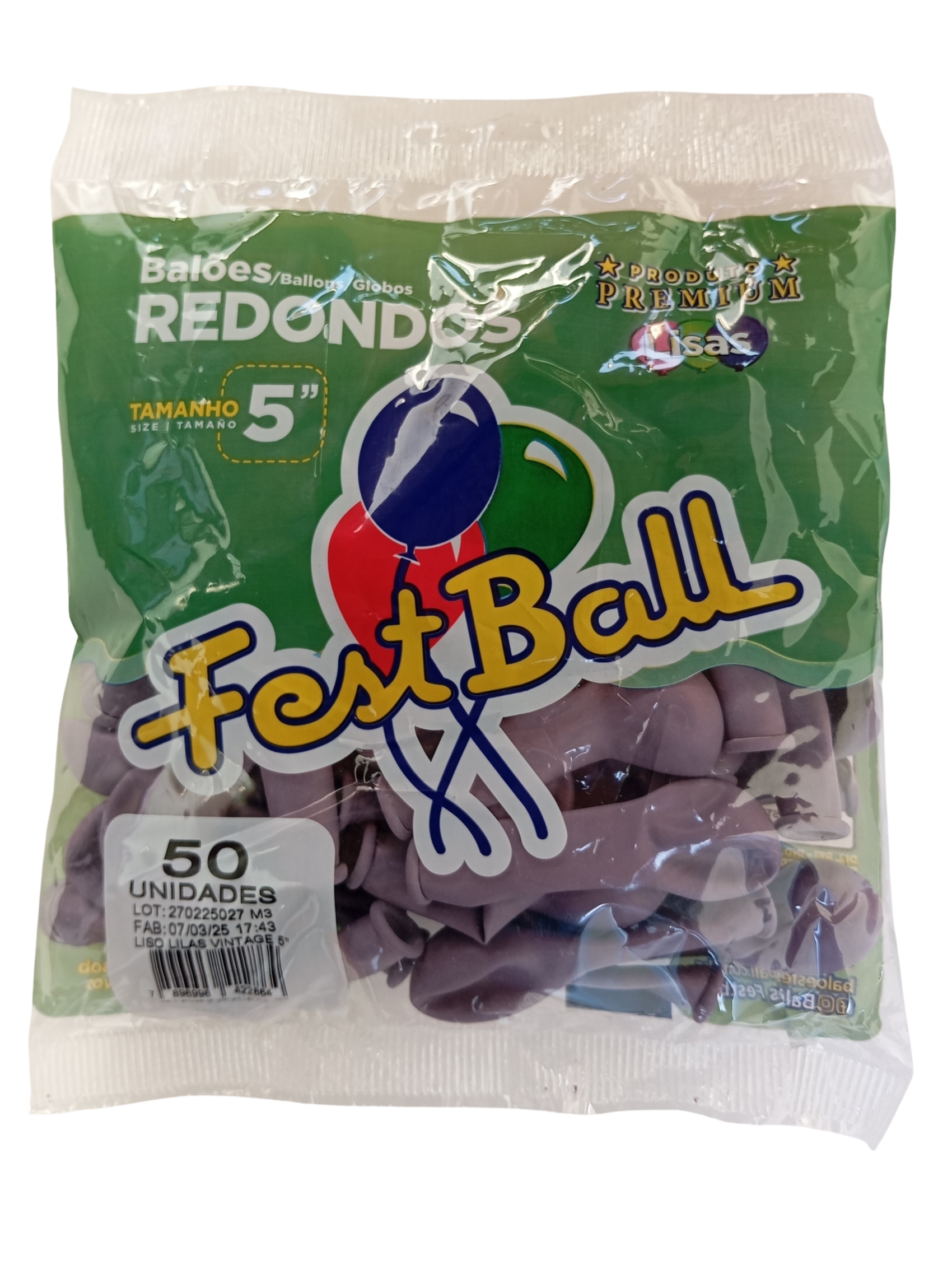 O Balão 5" Lilás Vintage Liso FestBall é ideal para dar detalhes delicados e sofisticados às decorações. Sua cor suave e elegante traz um toque romântico e acolhedor, perfeito para composições discretas e charmosas.