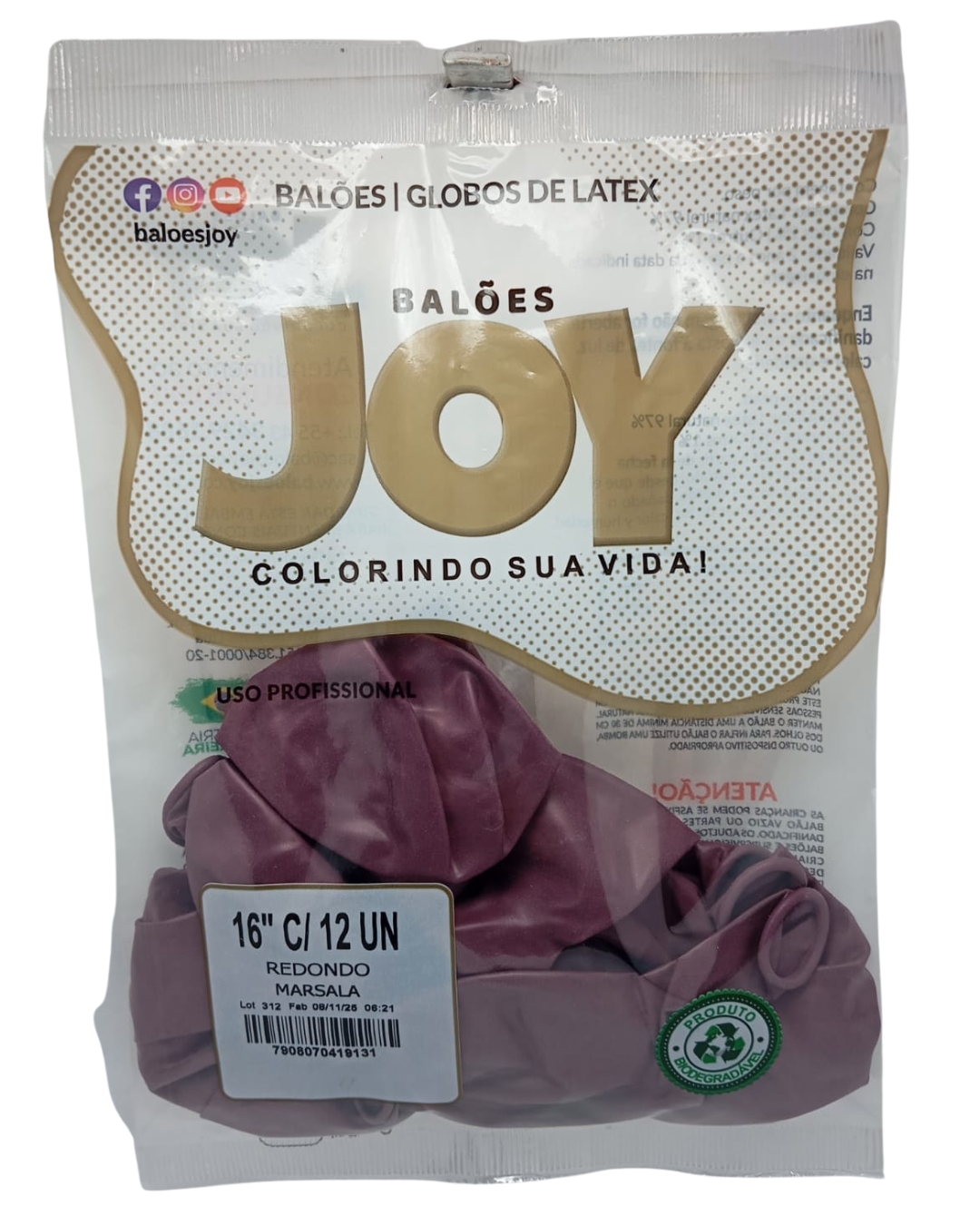 Balão 16" Joy Liso - 12 unidades - Biodegradável - Marsala