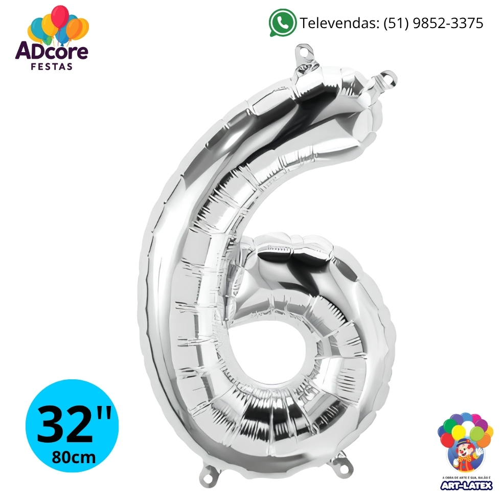 Balão Metálico Número Art-Latex 32" - Art-Latex - Prata - 6
