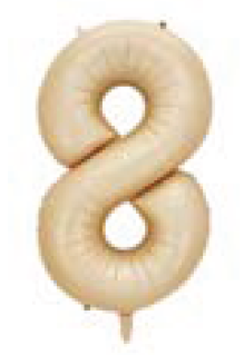 Balão metalizado no formato do número 8, na cor Caramelo, com altura aproximada de 40cm (16 polegadas). NÃO flutua com ar ou hélio. Indicado para uso decorativo em festas, eventos, ensaios, vitrines e comemorações em geral. Válvula de fechamento automático inclusa.